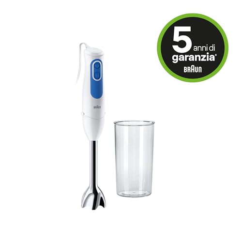 Il frullatore Braun Multiquick 3 MQ 3000 Smoothie Plus è un classico modello a immersione che viene venduto con il suo classico bicchiere graduato che ha una capienza di circa 600 ml. Questo modello, dal punto di vista del design e delle funzioni supportate è abbastanza basic, ma dobbiamo dire che possiede anche alcune qualità che lo rendono particolarmente interessante e quindi meritevole di attenzione. Innanzitutto parte del corpo del frullatore, tutta la parte che contiene le lame principalmente, è realizzata in acciaio e ha quindi una maggiore robustezza e resistenza. Altro aspetto molto vantaggioso è la potenza elevata che il motore sfrutta e che permette al frullatore di essere particolarmente efficiente e molto versatile. Parlando di qualche aspetto meno convincente dobbiamo dire che il cavo di alimentazione è leggermente corto e che anche il rumore prodotto dallo strumento durante il funzionamento è abbastanza presente. D'altro canto avrete la possibilità di sfruttare due diverse velocità, quella classica e quella turbo, che potranno quindi essere personalizzate in base alle vostre necessità. Il prezzo è poi davvero conveniente e competitivo, in particolare se paragonato alle buone qualità del frullatore, e lo rende quindi un modello consigliato e sicuramente da valutare rispetto ad altri in commercio.